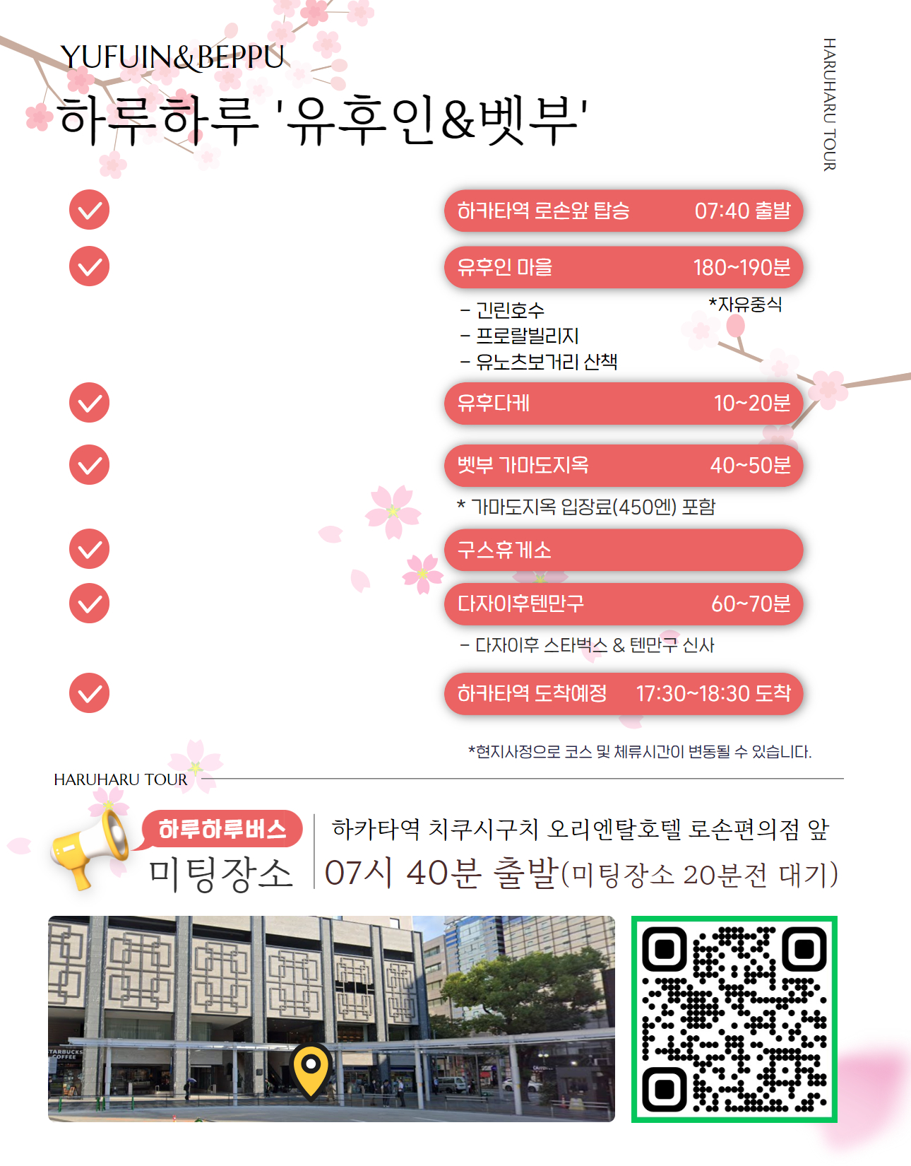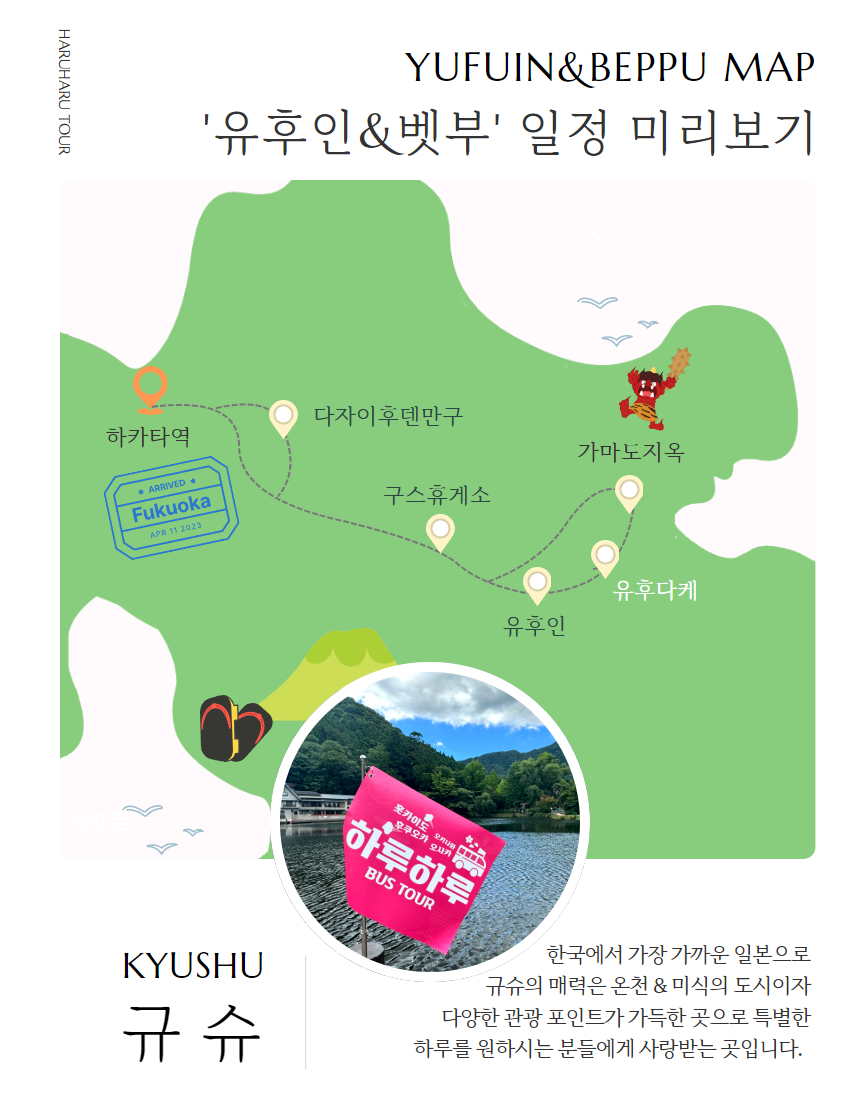 후쿠오카 유후인 버스 일일 투어 다자이후 벳부 1일 출발전까지 예약가능