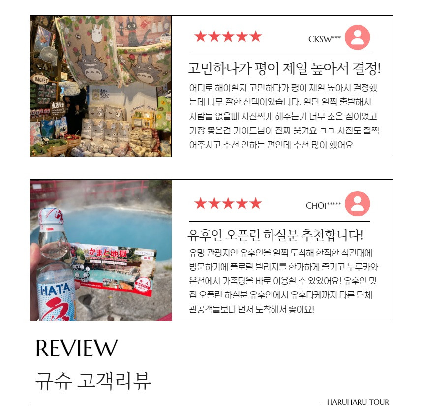 유후인 1등도착 오픈런가능!! 1명부터 무조건 출발확정!!
