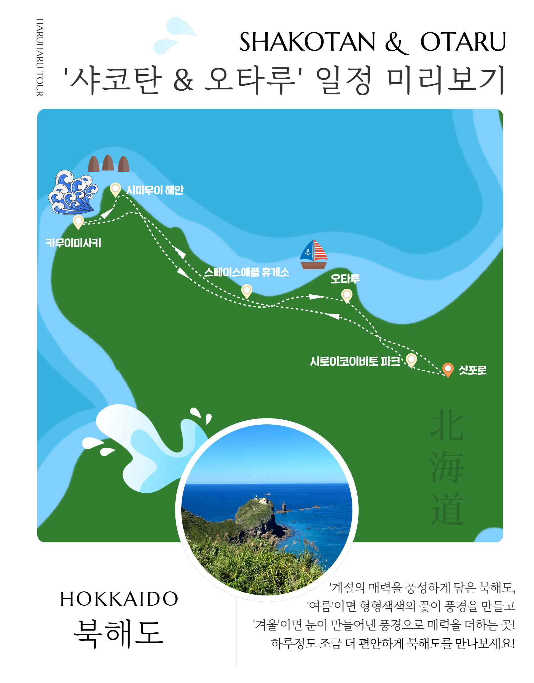 삿포로 오타루 샤코탄 일일 버스 투어 시로이코이비토 북해도 일본 여행