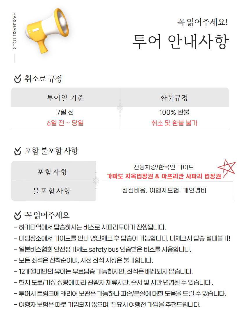 사파리투어 재밌고 유후인도 같이 둘러보니 좋았습니다. 가마도지옥도 짧게지만 재밌게 본거같아요
