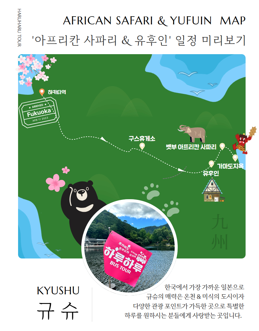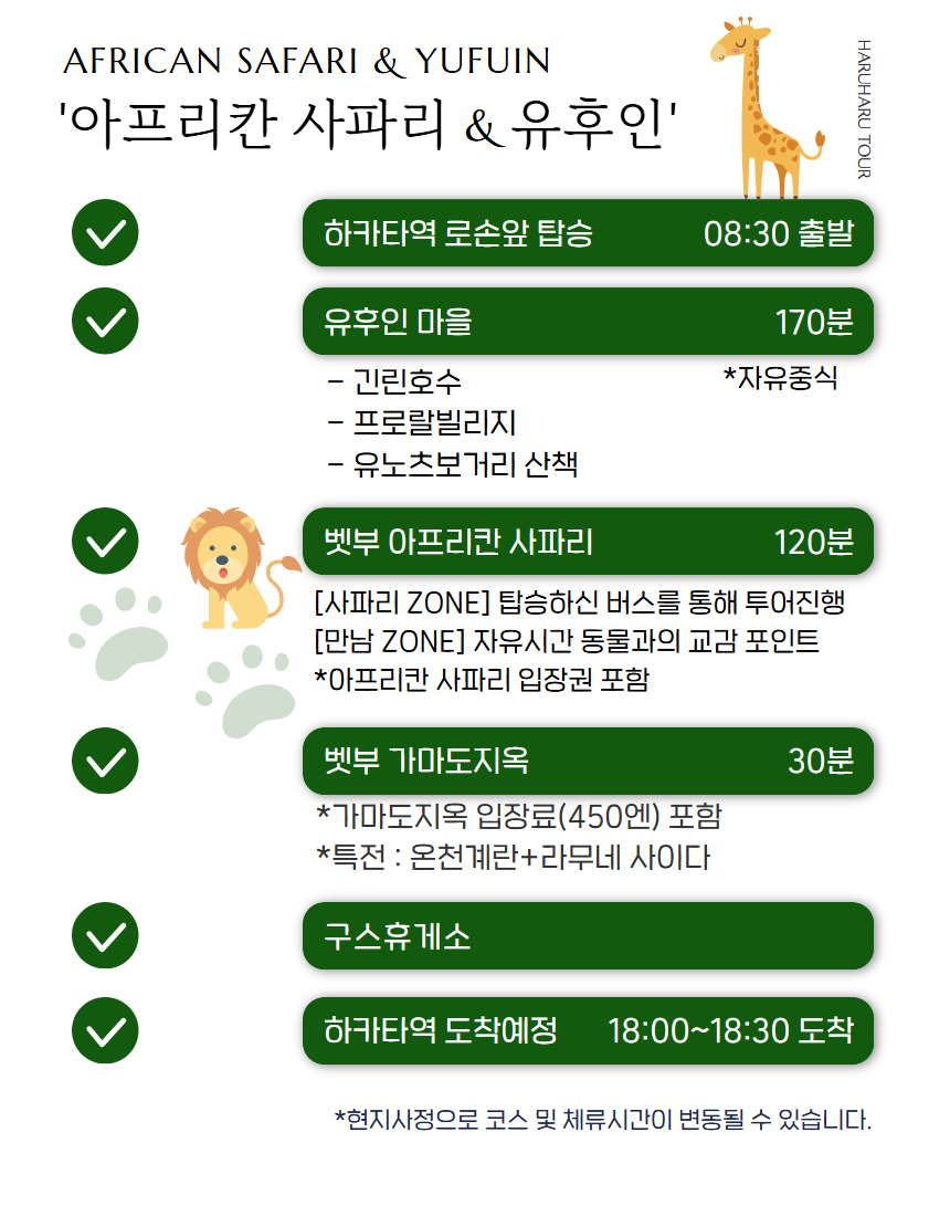 후쿠오카 유후인 아프리칸 사파리 버스 일일 투어 벳부 1일 일본 여행